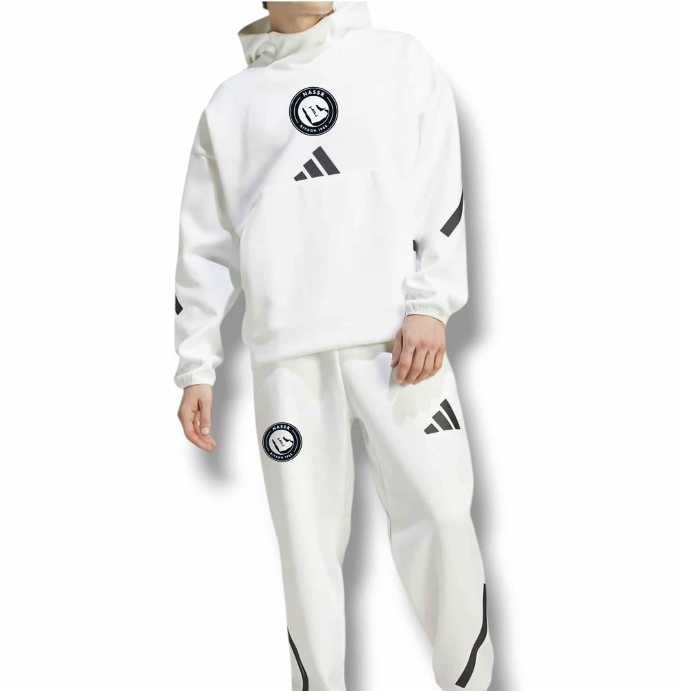 طقم بلوفر النصر الجديد 2026 باللون الابيض مصنوع من بوليستر قطني اصلي عالي الجوده متوفر في جميع المقاسات للكبار والصغار مع خيار طباعة حسب الطلب. يتكون الطقم من بلوفر ابيض بشعار نادي النصر وبنطلون أبيض شتوي مريح. مثالي لفصل الشتاء في السعودية.