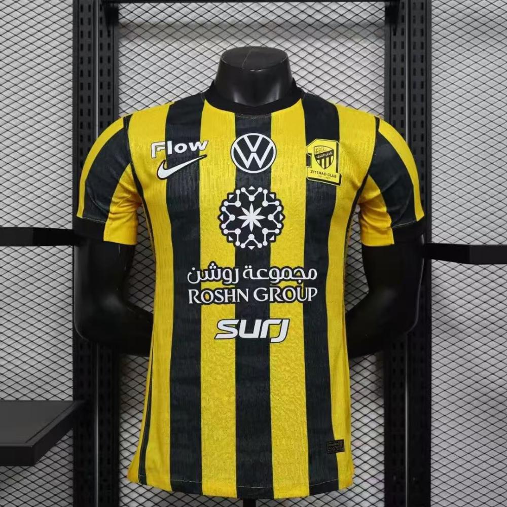 الشعار: شعار نادي الاتحاد مطرز بدقة على الجهة اليسرى من الصدر.